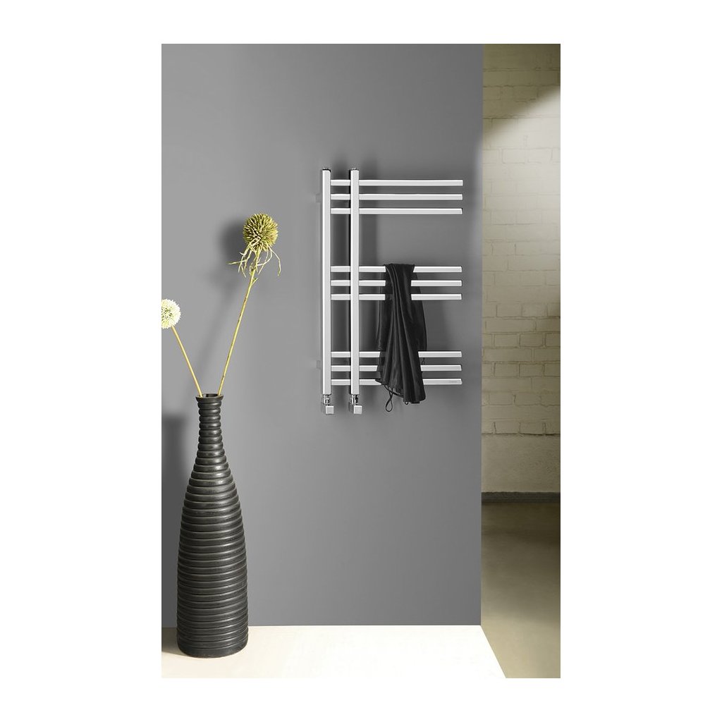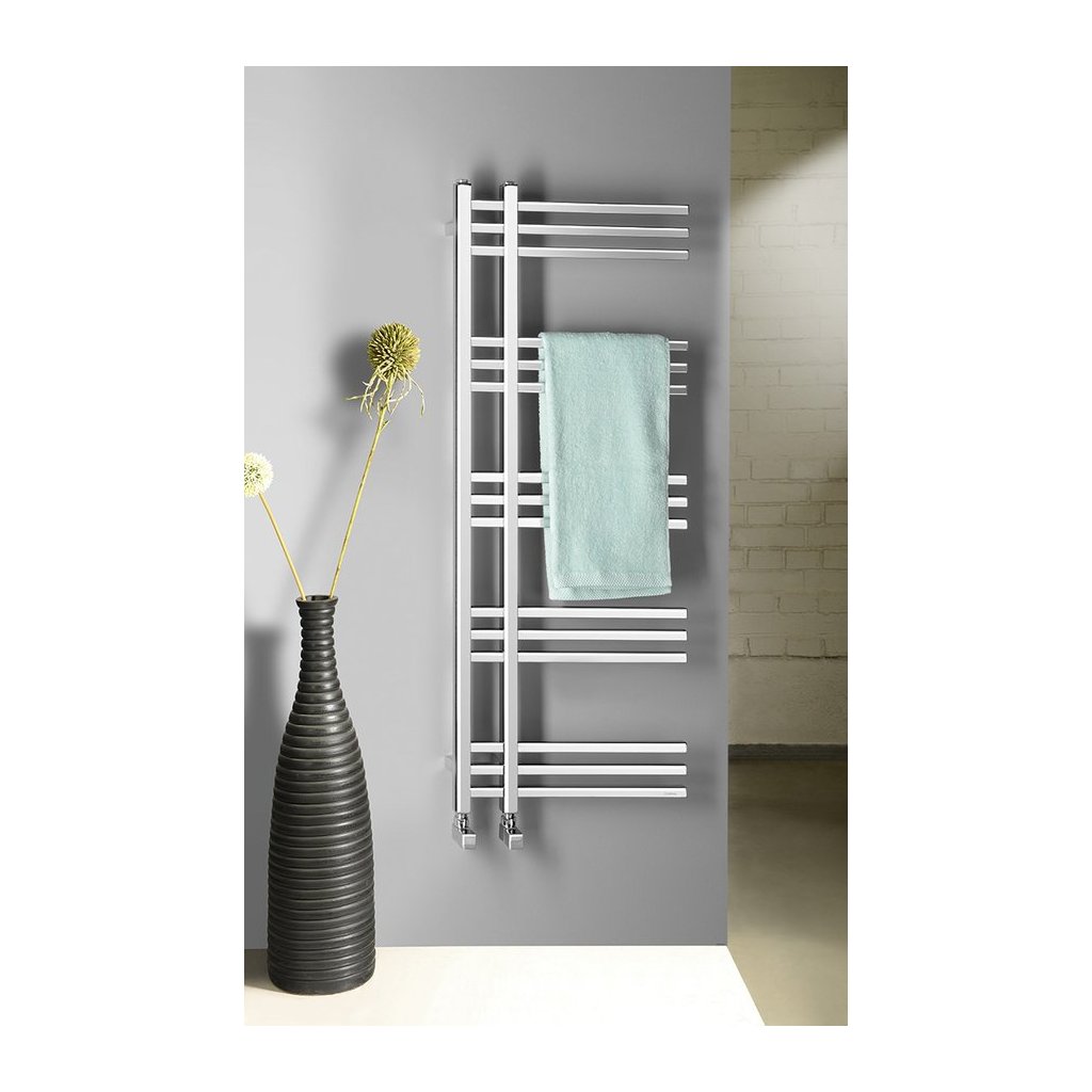 Elementul de incalzire pentru baie in forma de design cu aspect exceptional este realizat din tevi de otel cromat. Radiatorul poate fi agățat pe ambele părți.