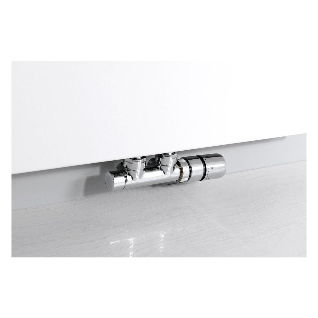 Supapă cu cap termostatic: Termostatul integrat menține temperatura ambientală setată. Capul termostatic trebuie să fie la punctul de alimentare cu apă caldă.