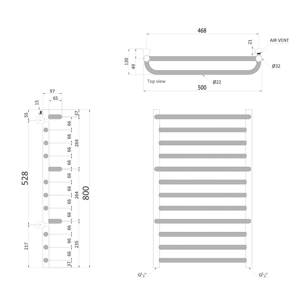 Sapho, element de incalzire MANISA 500x800mm, cu trei manere pentru un prosop, crom, IZ110
