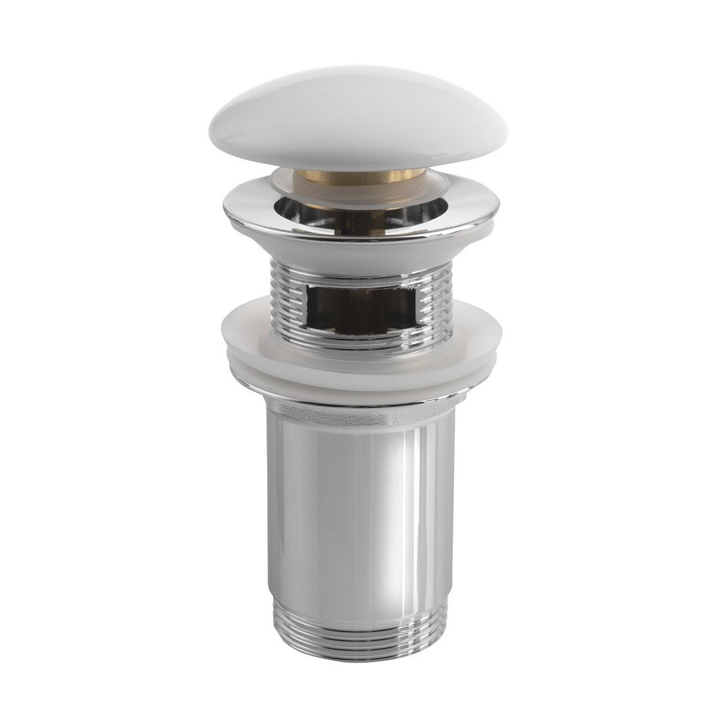 Sapho, Iesire chiuveta 5/4", click-clack, dop ceramic, grosime 0-60mm, pentru chiuvete cu preaplin, alb, AR902