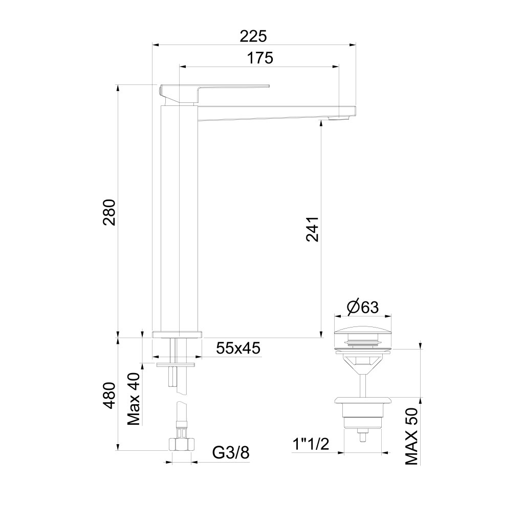 Sapho, LATUS Baterie de bază pentru lavoar fără priză, înalt, crom, 1102-04C