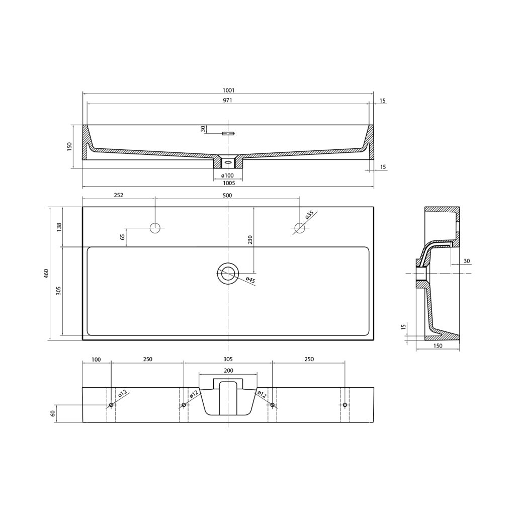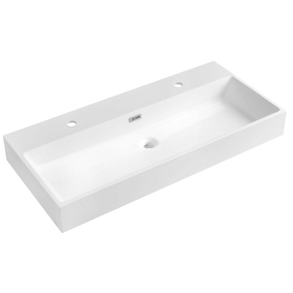 Sapho, lavoar ACVATIC, marmura turnata, 100x46cm, 2 gauri pentru robinet, alb, AT100-2