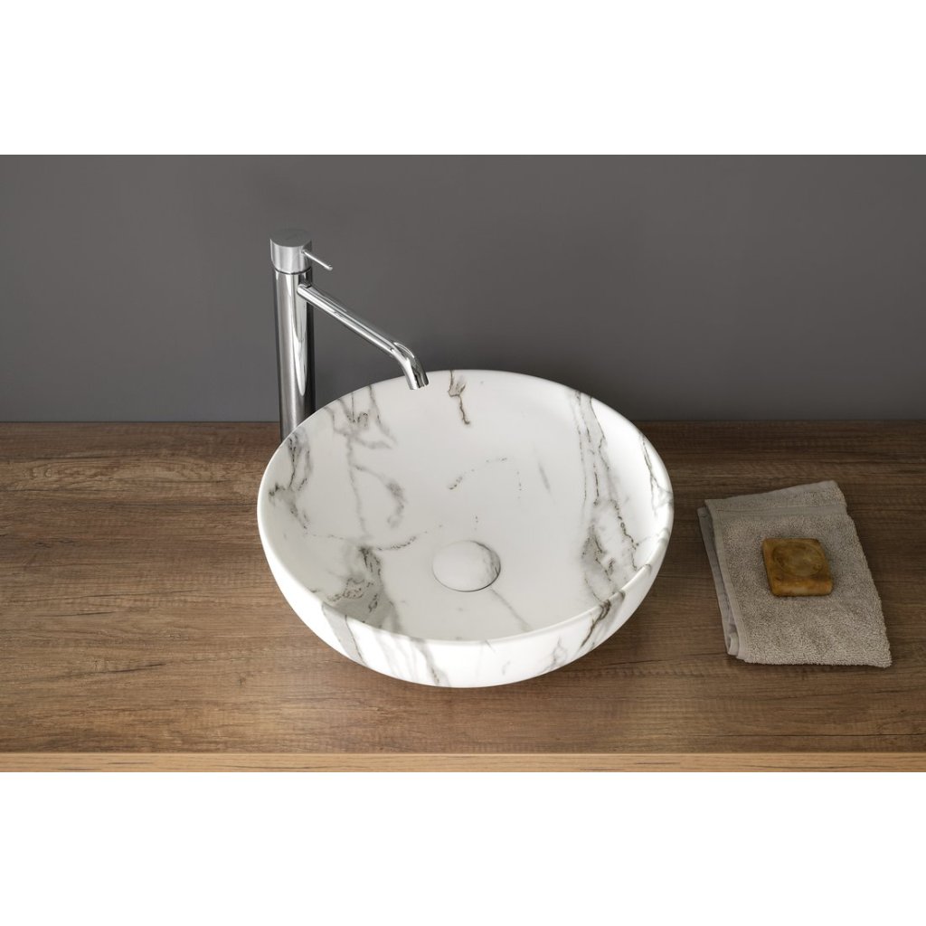 Sapho, lavoar blat ceramic RONDANE diametru 41cm, bianco carrara, AR435BC