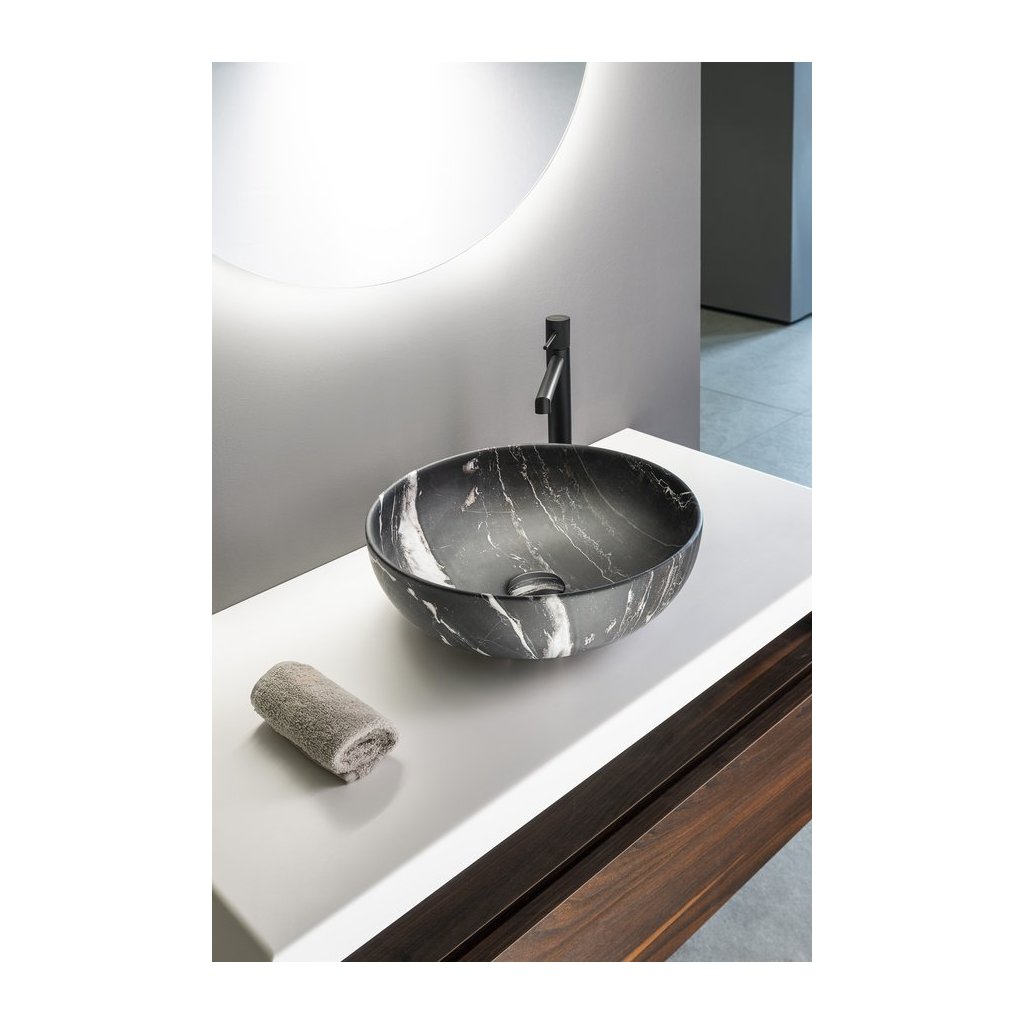 Sapho, lavoar blat ceramic RONDANE diametru 41cm, carnico marmor, AR435CM
