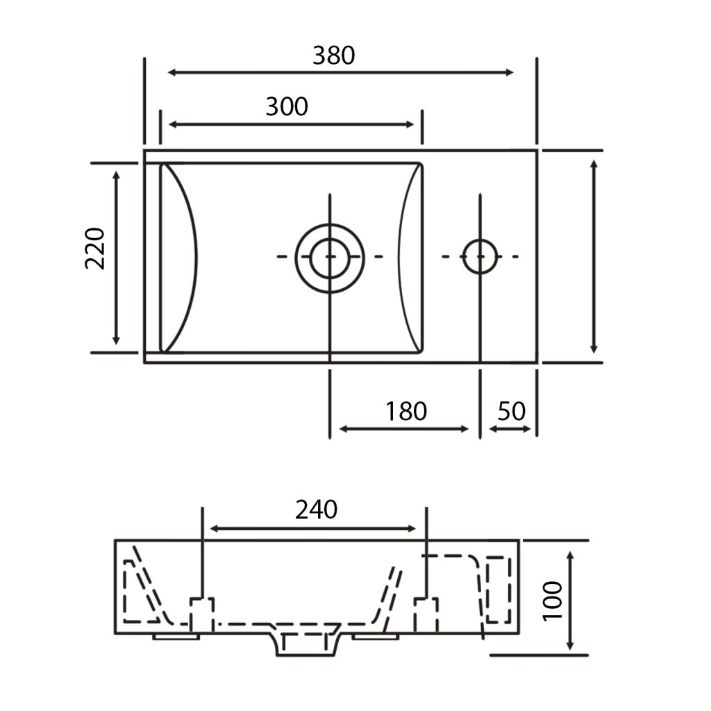 Sapho, lavoar ceramic MARGITHA 38x22cm, orificiu baterie dreapta, fistic, MGT38223