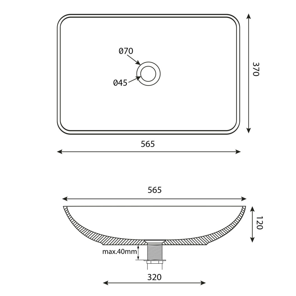 Sapho, lavoar de blat din beton INFRANE, inclusiv scurgere, 57x37cm, gresie albă, AR460