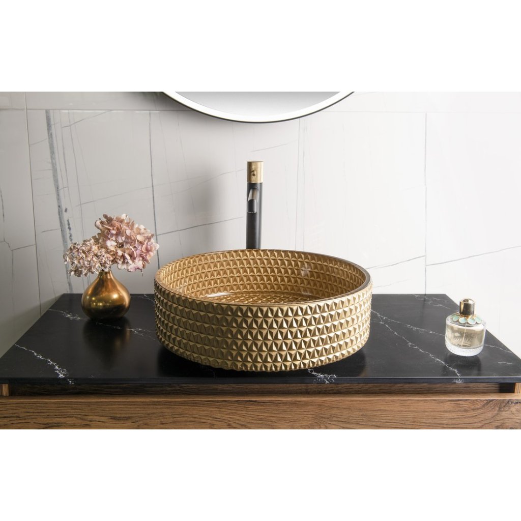 Sapho, lavoar de blat MARAGUA din sticlă gravată Ø 39,5 cm, auriu, TY214Z