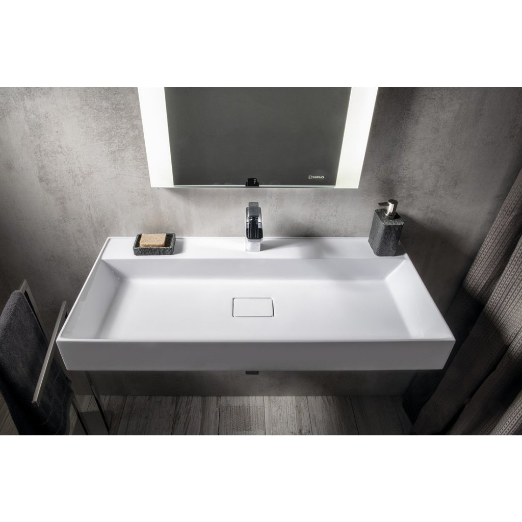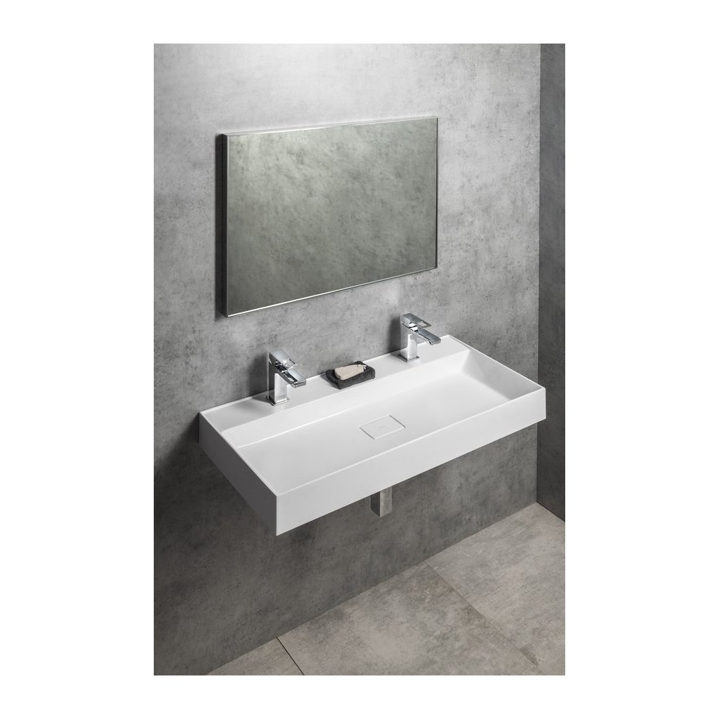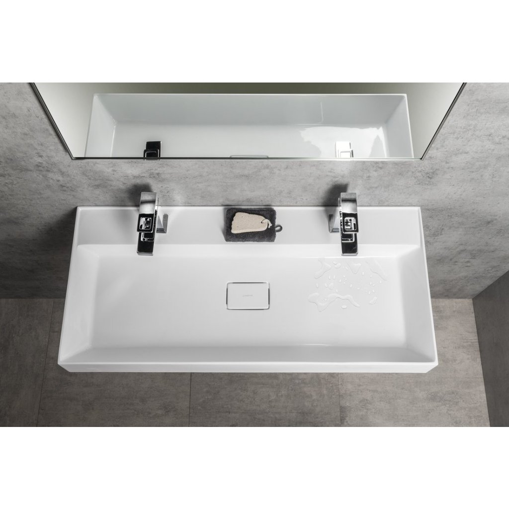 Sapho, lavoar GODIVA, marmura turnata, 96x44cm, 2 gauri pentru baterii, alb, GU096-2