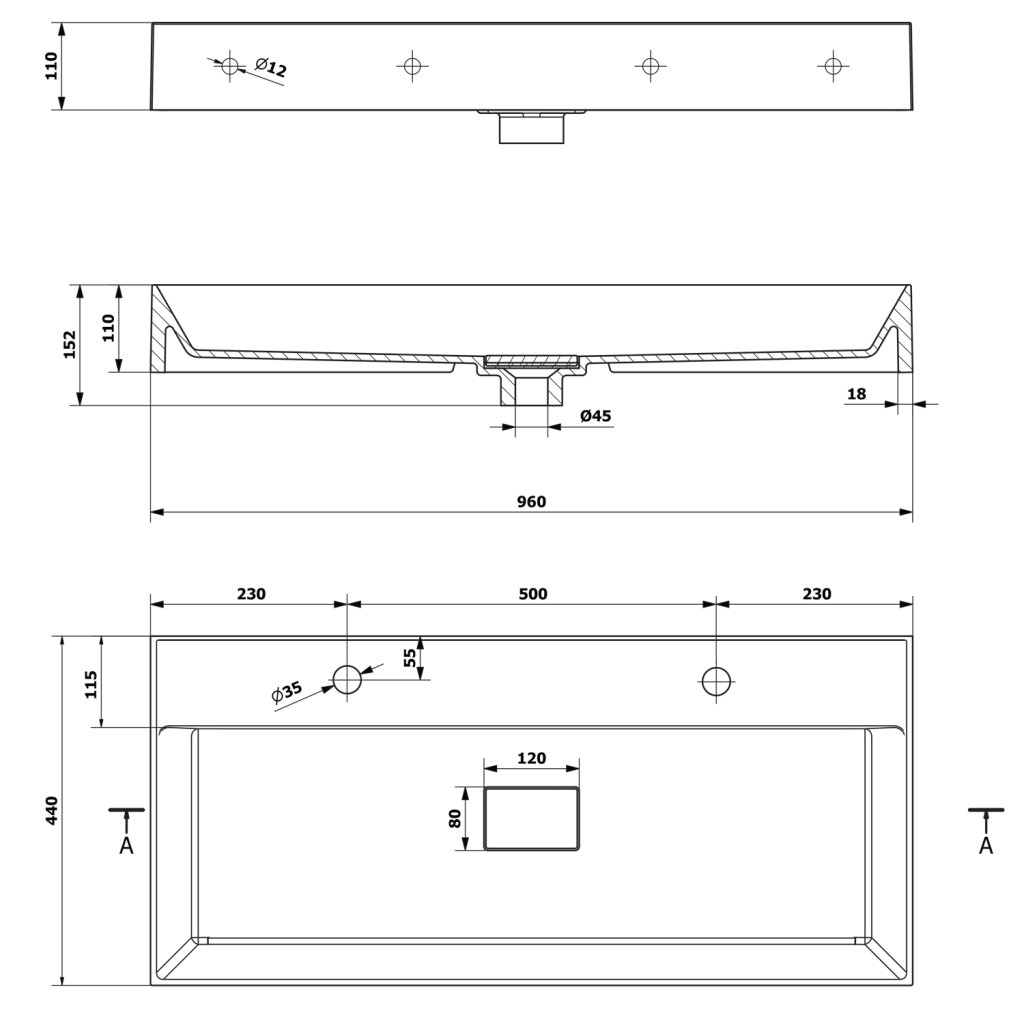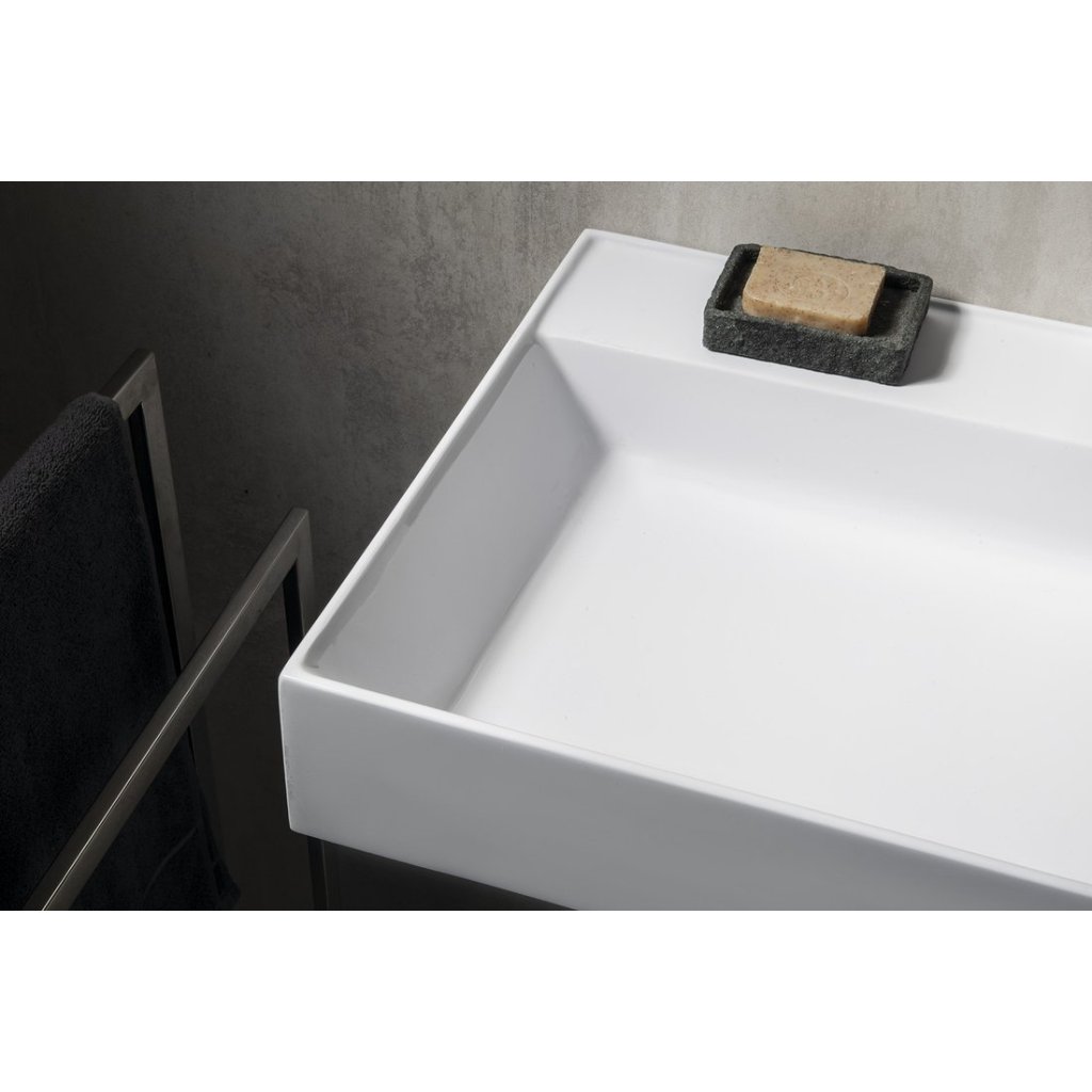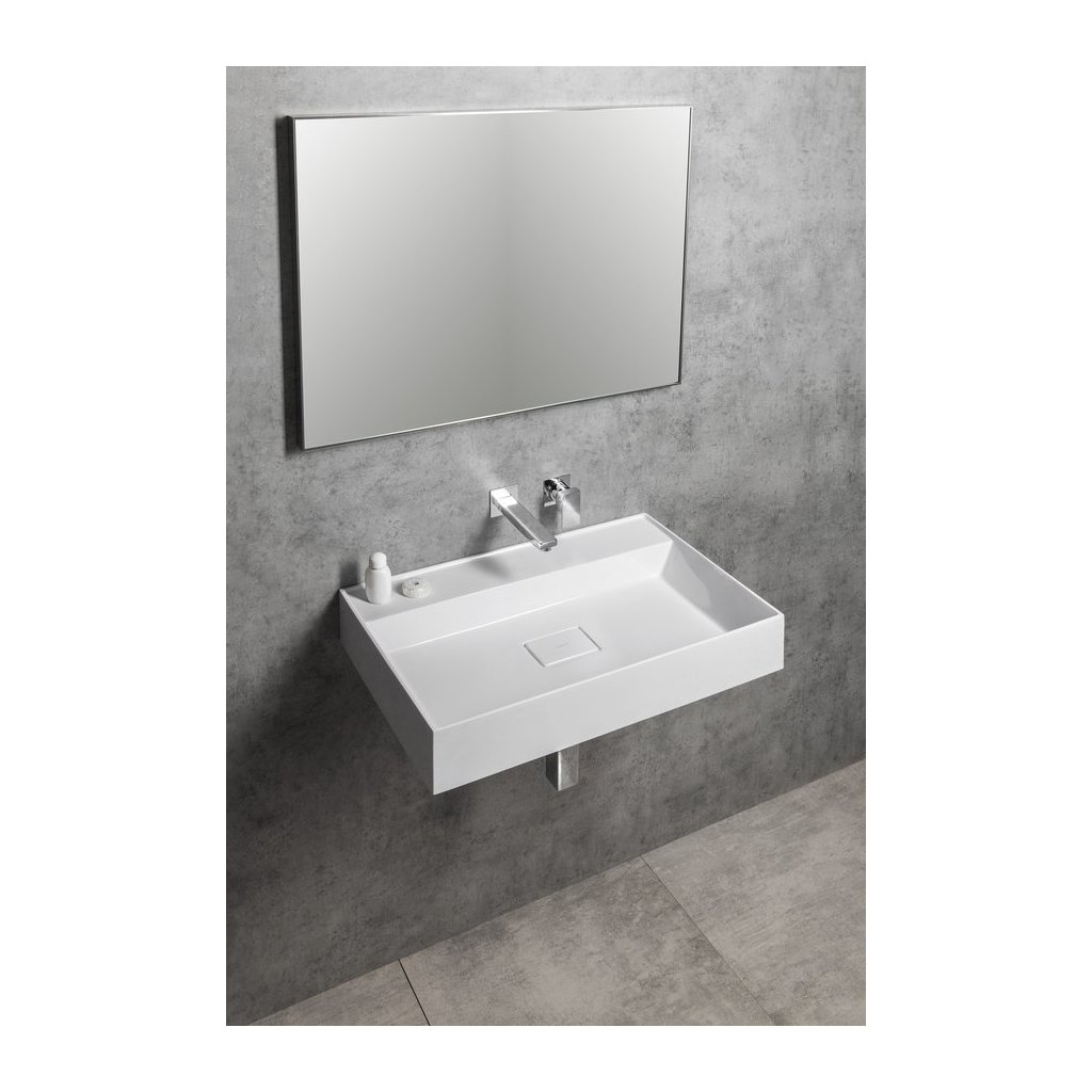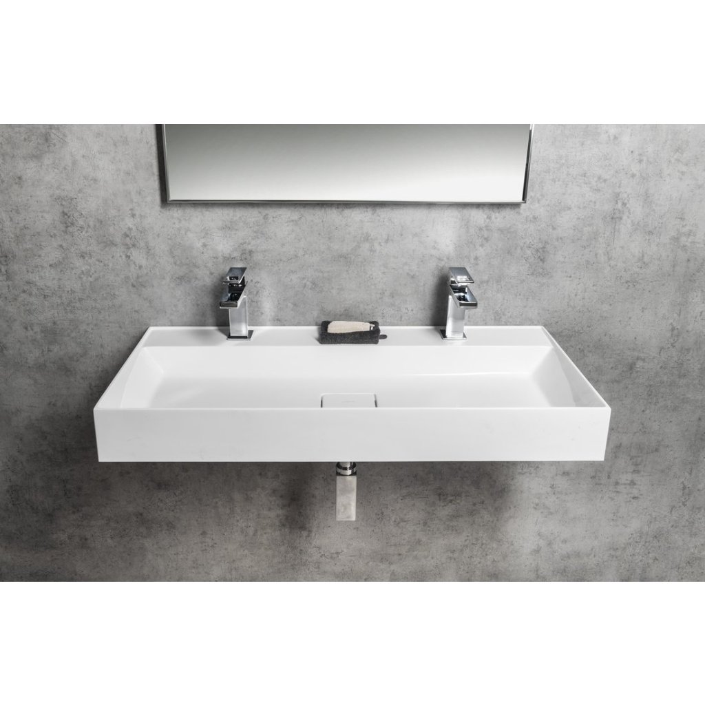 Sapho, lavoar GODIVA, marmura turnata, 96x44cm, 2 gauri pentru baterii, alb, GU096-2