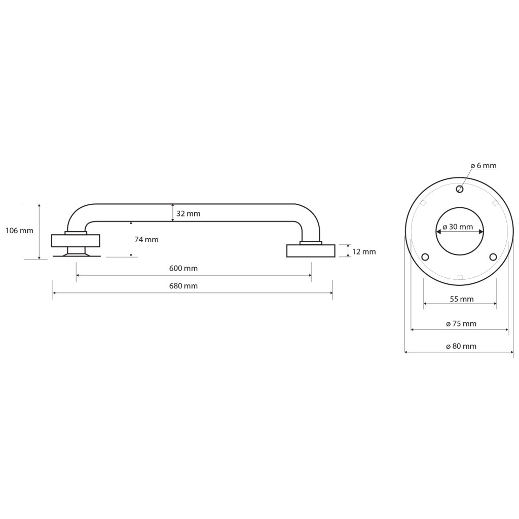 Sapho, mâner HANDICAP 600mm, negru, XH512B