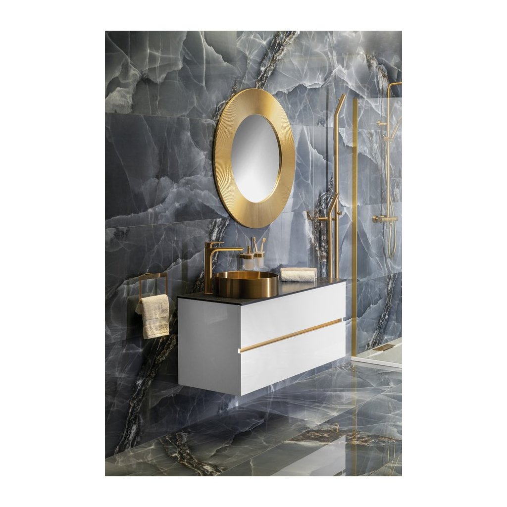 Seria ODETTA oferă dulapuri pentru lavoar în combinație cu 3 tipuri de lavoare - ceramică KARE, marmură turnată GODIVA și beton QUADRADO. Seria este concepută și pentru anumite lavoare independente. Variabilitatea dimensională este posibilă prin combinarea dulapului pentru lavoar și a celui de bază. Sertarele fără mânere sunt echipate cu extensii BLUM cu închidere silențioasă. Sertarul superior nu are decupaj pentru sifon, ceea ce mărește suprafața de depozitare a sertarului. Între sertare există o bandă de aluminiu CHANEL neagră sau albă. Banda poate fi furnizată și în auriu, la cerere.