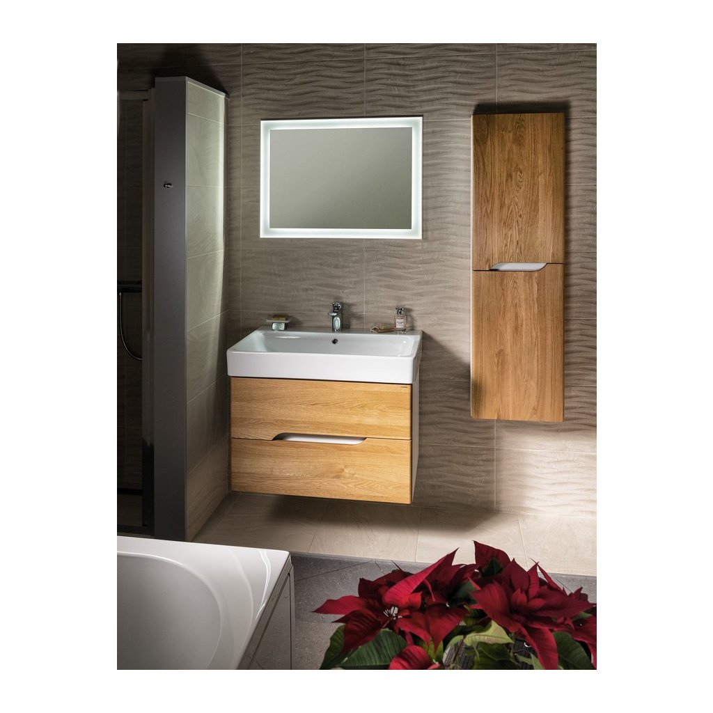 Oglinzile Flute iluminate din spate cu construcția lor eficientă evocă impresia că suprafața oglinzii plutește în cadru. Lumina intimă difuză pătrunde în baie prin spațiul deschis dintre cadru și oglindă. Oglinzile sunt echipate cu iluminare cu LED alb.