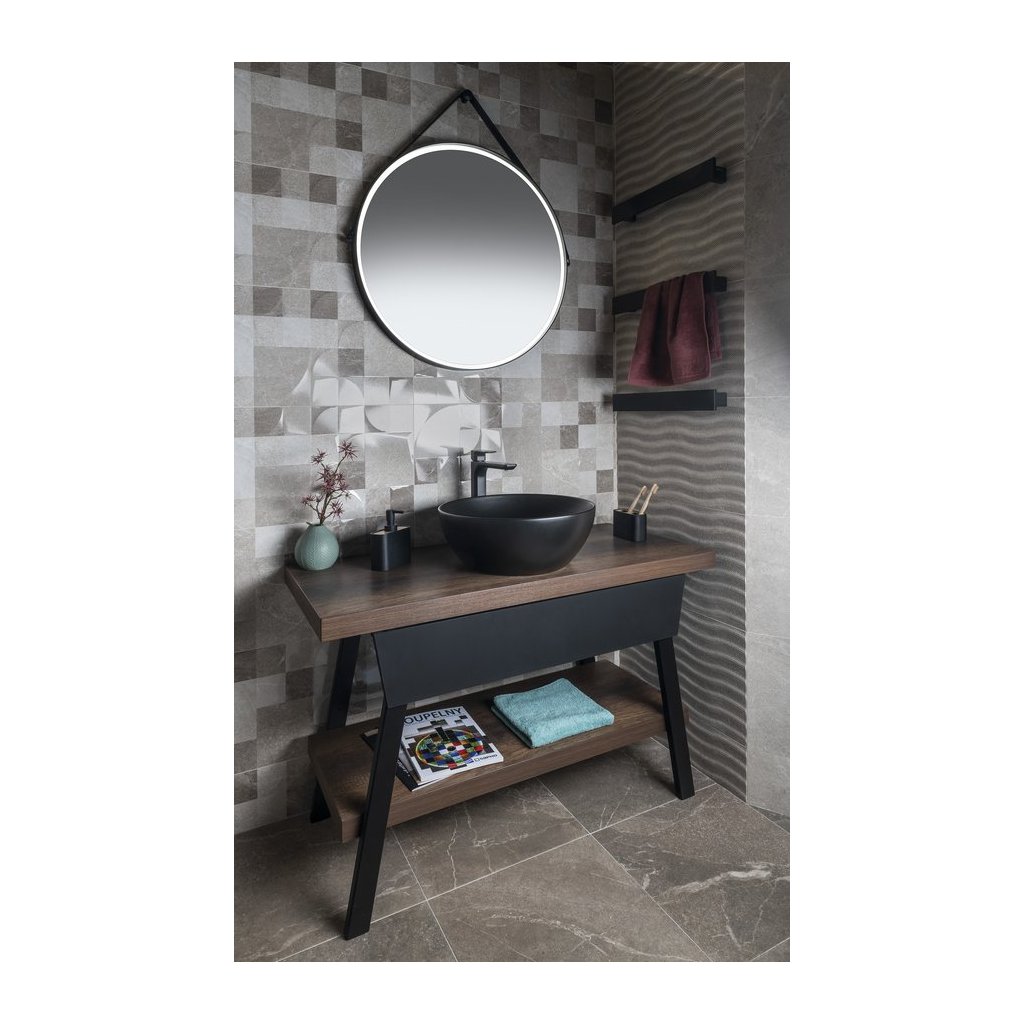 Sapho, oglindă rotundă ORBITER cu iluminare LED, curea din piele, ø 70cm, negru mat, ORL070