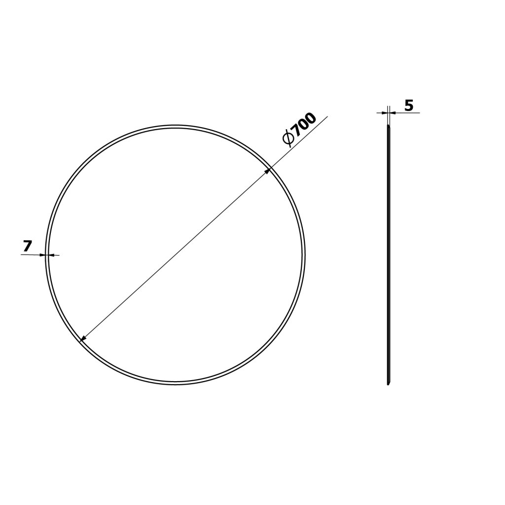 Sapho, oglinda rotunda RENGAS 700mm cu fateta, fara maner, RG070