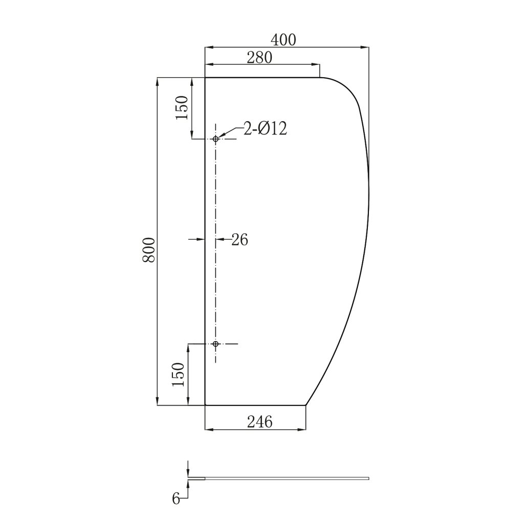 Sapho, Perete separator intre pisoare 80x40 cm, sticla securizata, 2502-05