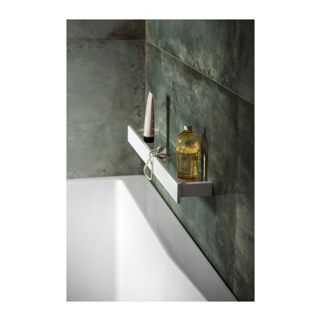 Raft elegant din sticlă pentru baie, cu bară inferioară pentru depozitarea obiectelor mici. Aparține seriei PATRON. Fabricat în alb modern, potrivit atât pentru băi luminoase, cât și pentru cele minimaliste. Instalarea este destinată montării pe perete prin găurire.