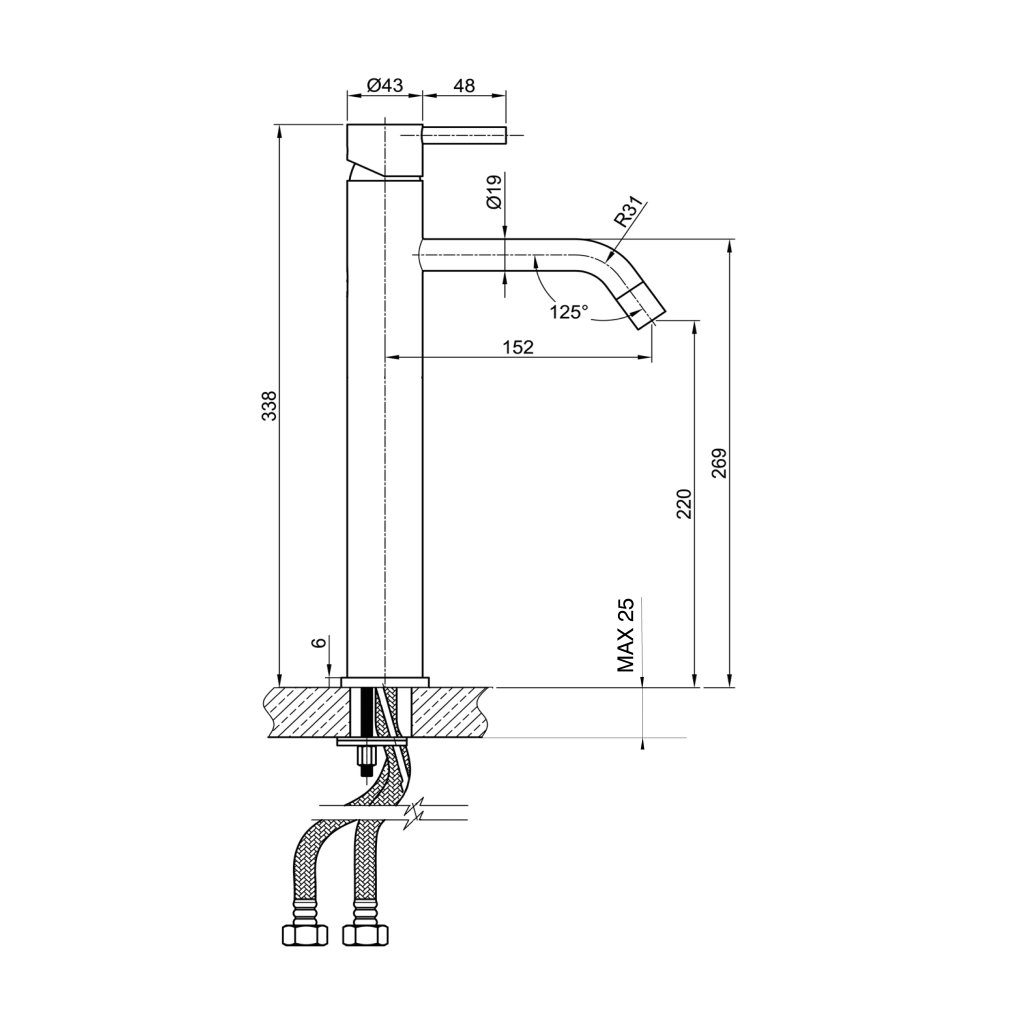 Sapho, robinet de lavoar vertical MINIMAL, înalt fără priză, oțel inoxidabil, MI202