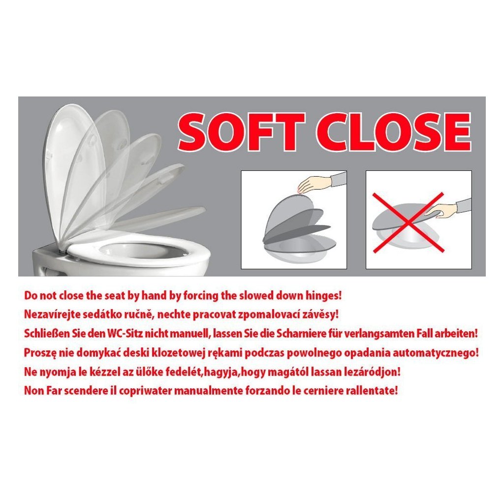 Cu ajutorul unui sistem hidraulic, atât capacul cât și scaunul cad încet pe vas. Plierea treptată a scaunului și a capacului garantează siguranță și previne deteriorarea scaunului și a vasului de toaletă/pisarului.