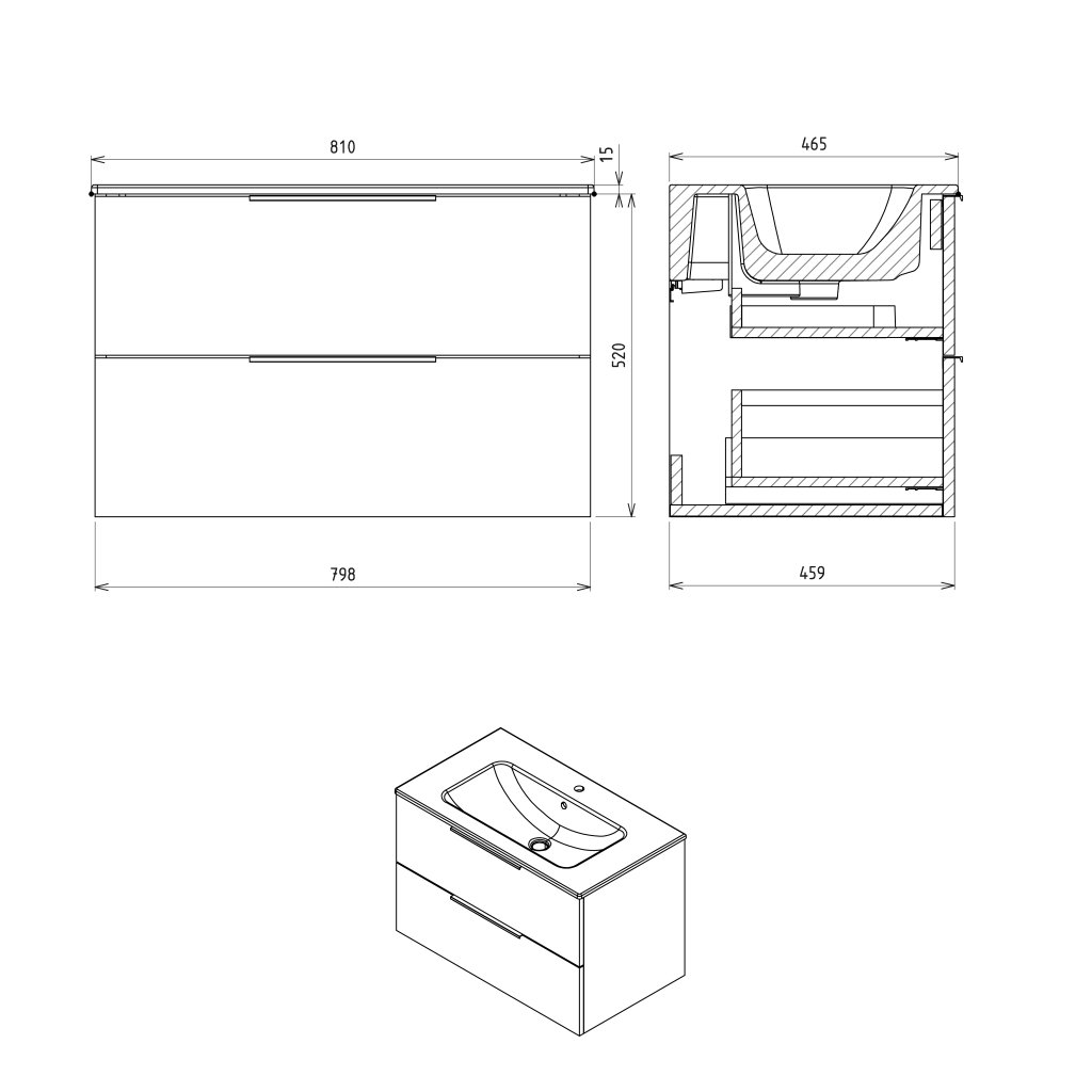 Seria CIRASA oferă dulapuri cu sertare cu 2 tipuri de chiuvete subțiri din ceramică PIEDRA și PRACTICO. Chiuvetele PRACTICO au doar 40 cm adâncime, deci sunt potrivite pentru băile mai mici. Dulapurile cu chiuveta PIEDRA pot fi combinate cu un dulap inferior cu usi. Pentru dulapurile cu lățimea de 70, 80 și 100 cm, chiuveta PIEDRA poate fi înlocuită cu un blat pentru chiuvetă pe picioare. Acest lucru creează mai multe variante dimensionale și de design. Dulapurile sunt livrate cu mânere cromate, dar pot fi achiziționate și alte tipuri de mânere.