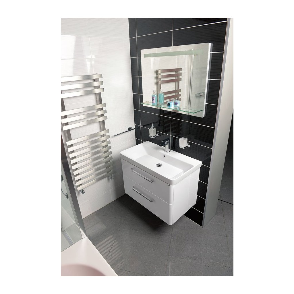 Linia modernă de dulapuri din seria THEIA se potrivește cu chiuvetele din ceramică THALIE, creând împreună un întreg interesant. Dulapurile și sertarele sunt echipate cu un mâner elegant. Sertarele sunt echipate cu ghidaje marca BLUM ® cu garantie pe viata, usile sunt echipate cu balamale cu inchidere usoara. Există o gamă de versiuni de sertare sau uși ale dulapurilor pentru chiuvetă în alb lucios și în decoruri laminate selectate.