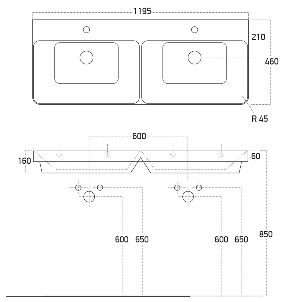 Sapho, Set de baie THEIA 120, chiuveta dubla, alb, KSET-011