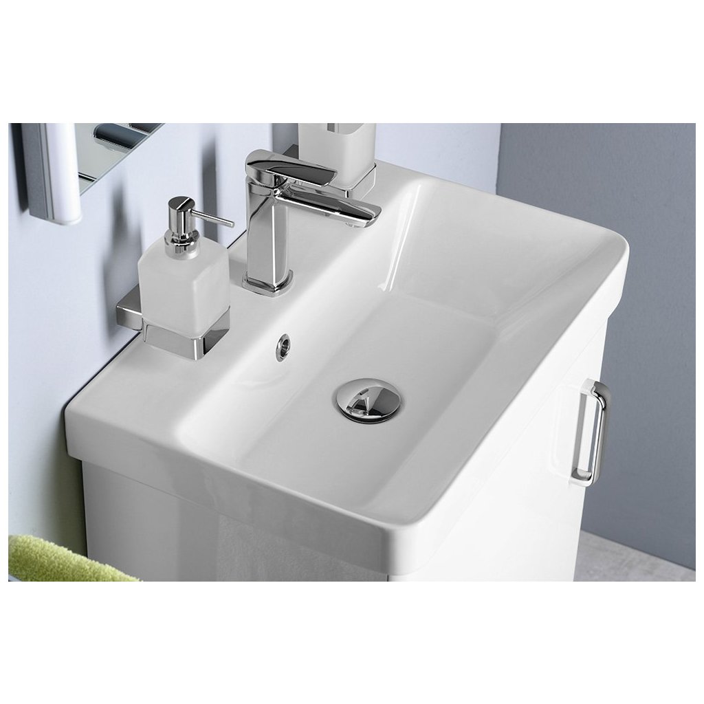 Linia modernă de dulapuri din seria THEIA se potrivește cu chiuvetele din ceramică THALIE, creând împreună un întreg interesant. Dulapurile și sertarele sunt echipate cu un mâner elegant. Sertarele sunt echipate cu ghidaje marca BLUM ® cu garantie pe viata, usile sunt echipate cu balamale cu inchidere usoara. Există o gamă de versiuni de sertare sau uși ale dulapurilor pentru chiuvetă în alb lucios și în decoruri laminate selectate.