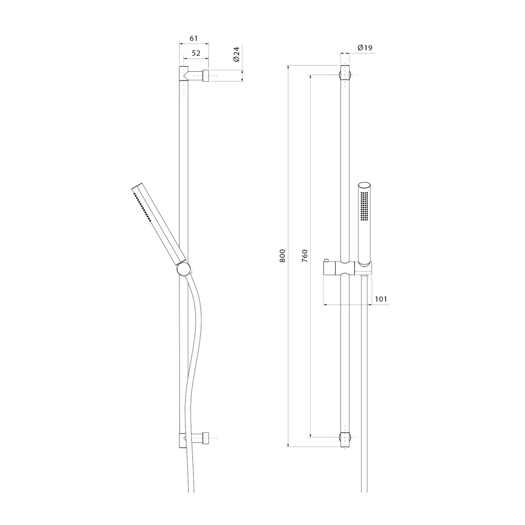 Sapho, set de duș, suport glisant, 800 mm, auriu mat, SC716G