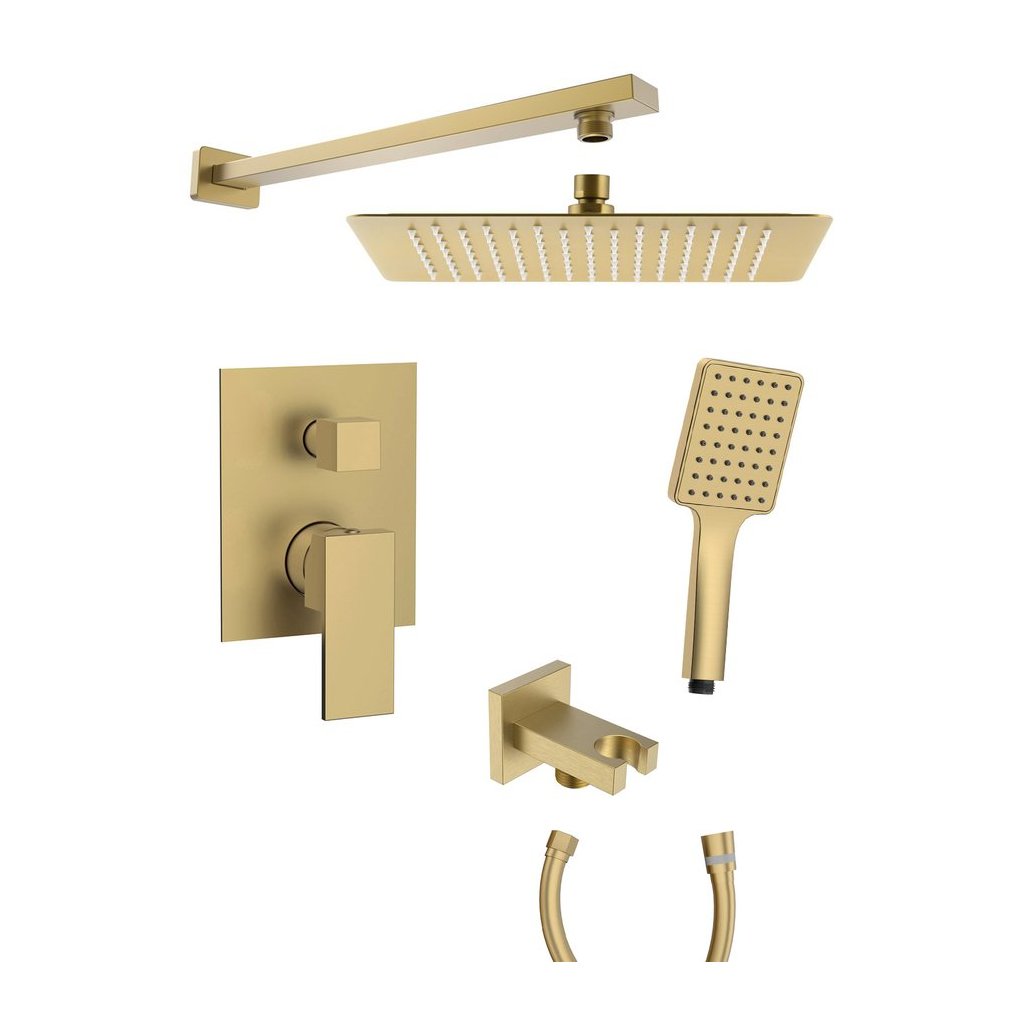 Sapho, set de duș ascuns CUBEMIX cu baterie cu manetă, 2 ieșiri, gura de scurgere, mat auriu, CM042GB-01