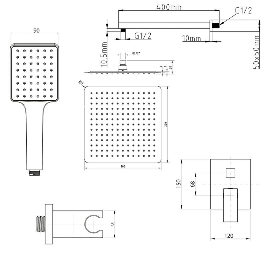 Sapho, Set de duș ascuns CUBEMIX cu baterie cu manetă, 2 ieșiri, negru mat, CM042B-01