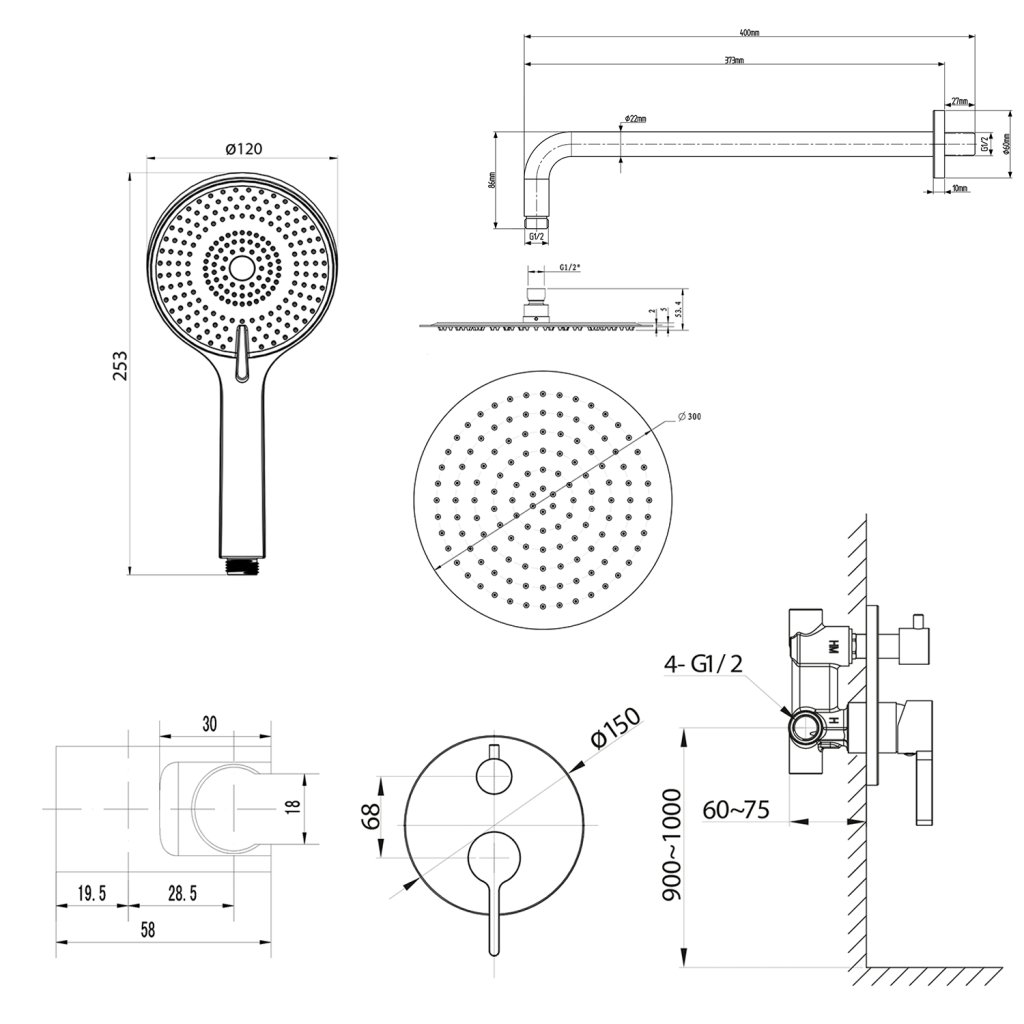 Funcție de duș: | Ploaie; Masaj; Ploaie/Masaj |