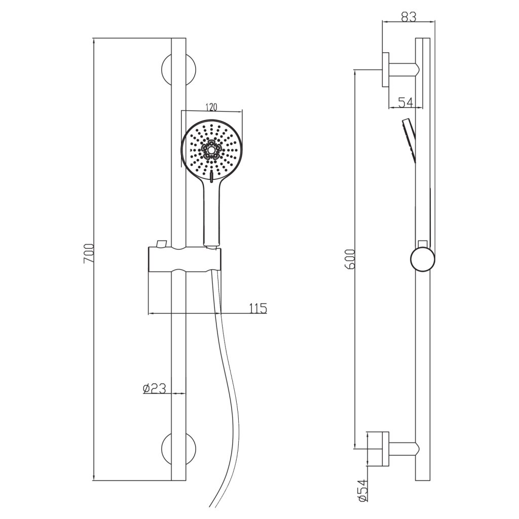 Sapho, set de duș ascuns KAI cu baterie cu manetă, comutator rotativ, 2 ieșiri, negru mat, KA43/15-02