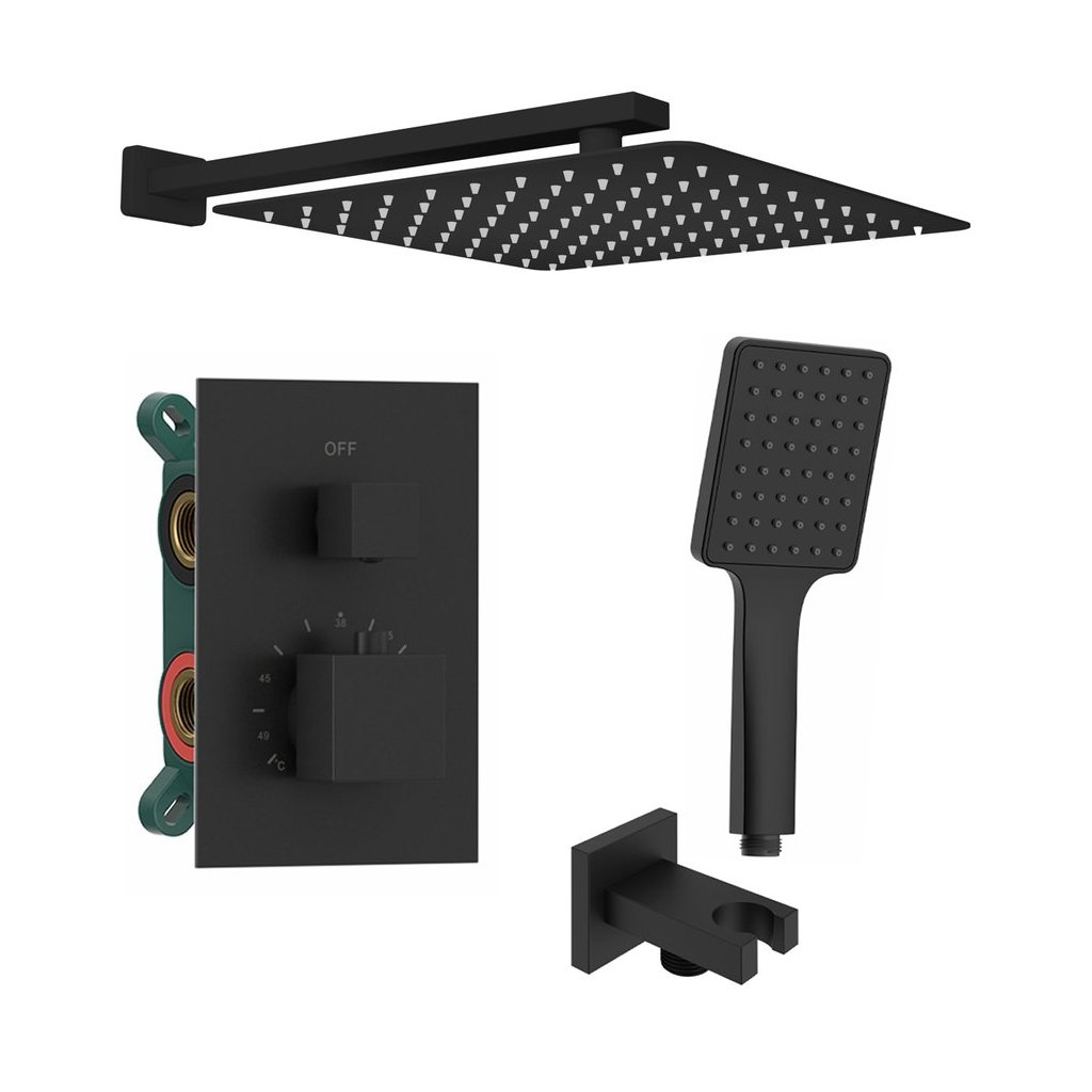 Sapho, Set de duș încastrat cu baterie termostatică, cutie, 2 ieșiri, negru mat, 1102-32B-21
