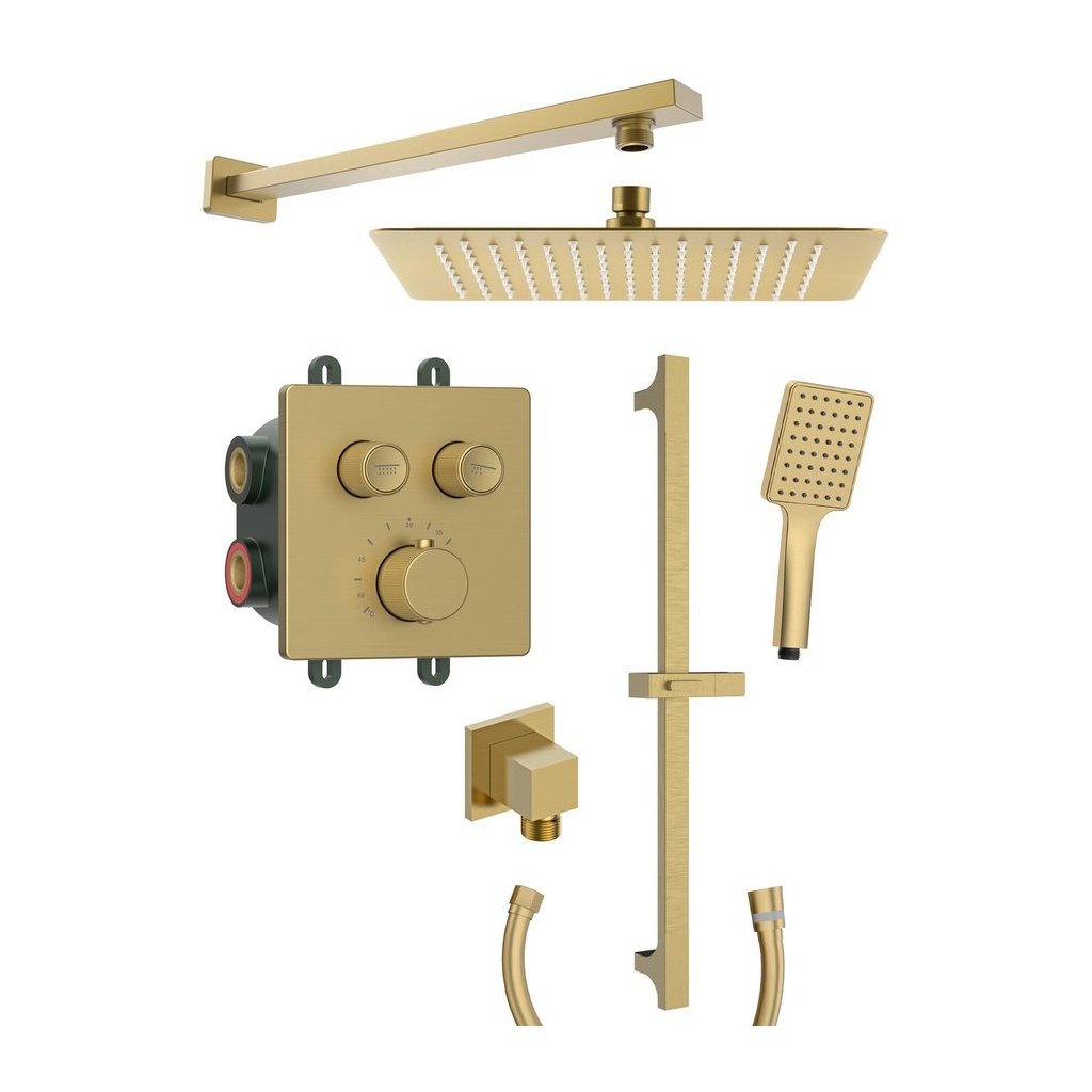 Sapho, set de duș SMART SELECT cu robinet termostatic, 2 ieșiri, suport de duș glisant, auriu mat, RP042GB-02