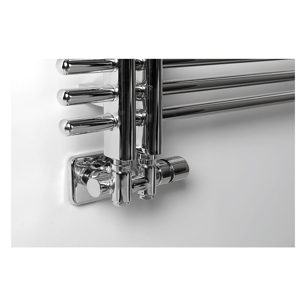 Supapele de conectare oferite de noi sunt livrate inclusiv șuruburi de strângere pentru cele mai comune țevi (Ø15 mm Cu și Ø16 mm Alupex), deci nu este nevoie să achiziționați nimic pentru racord. Pentru a acoperi conductele de alimentare și orificiile din perete, vă recomandăm să cumpărați rozete de acoperire.
