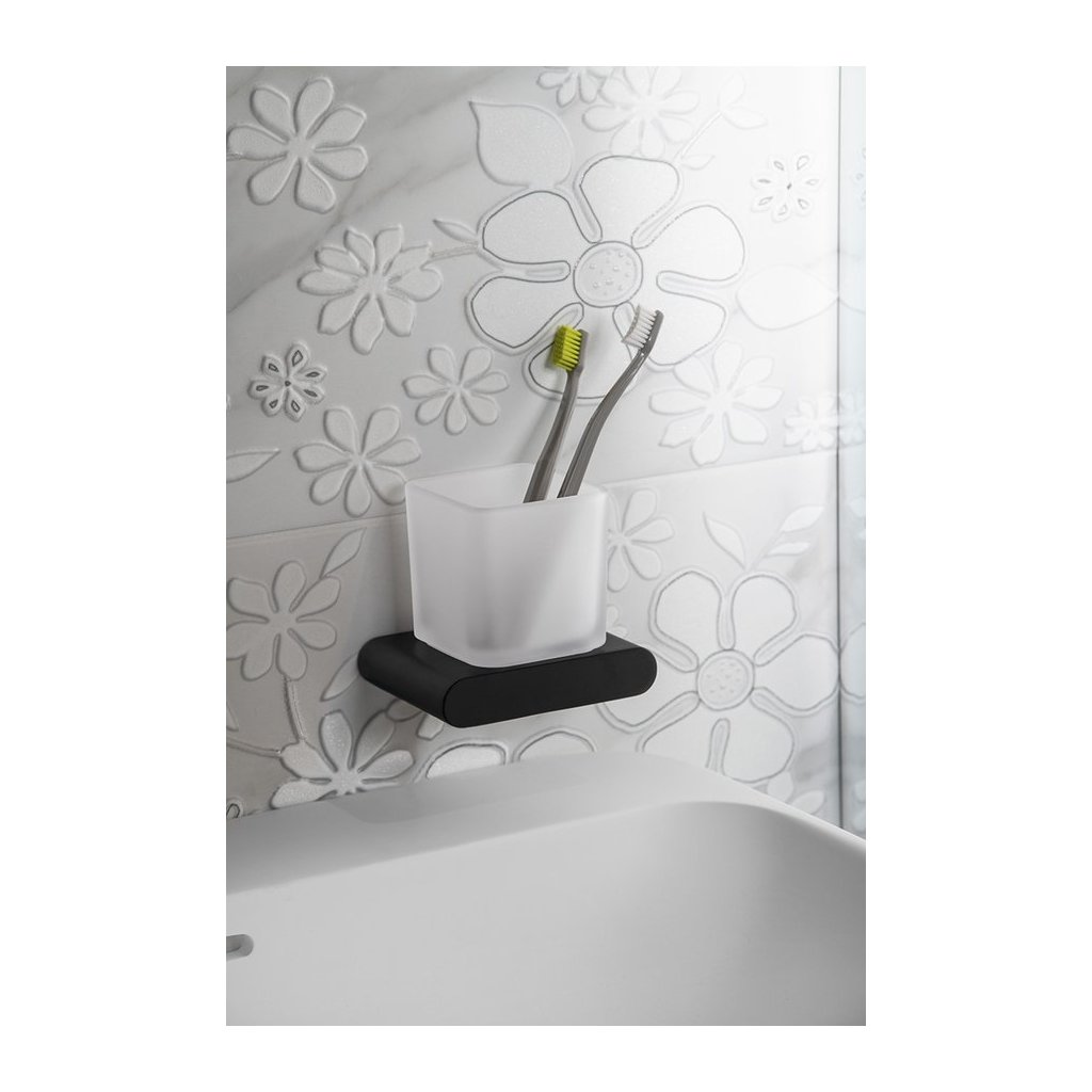 Sapho, sticla FLORI, sticla lapte, mat negru, RF004/15