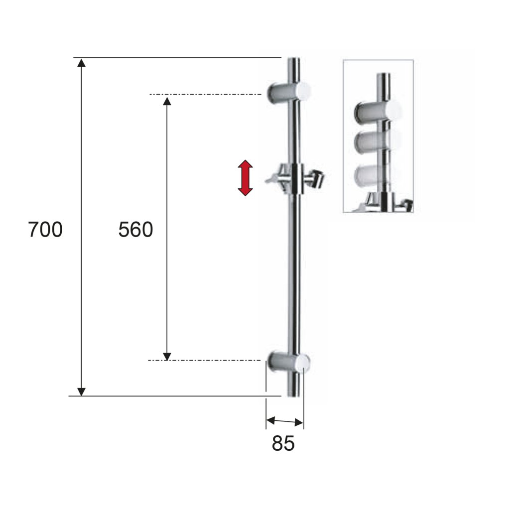 Sapho, Suport de duș glisant, 700mm, auriu, SC017