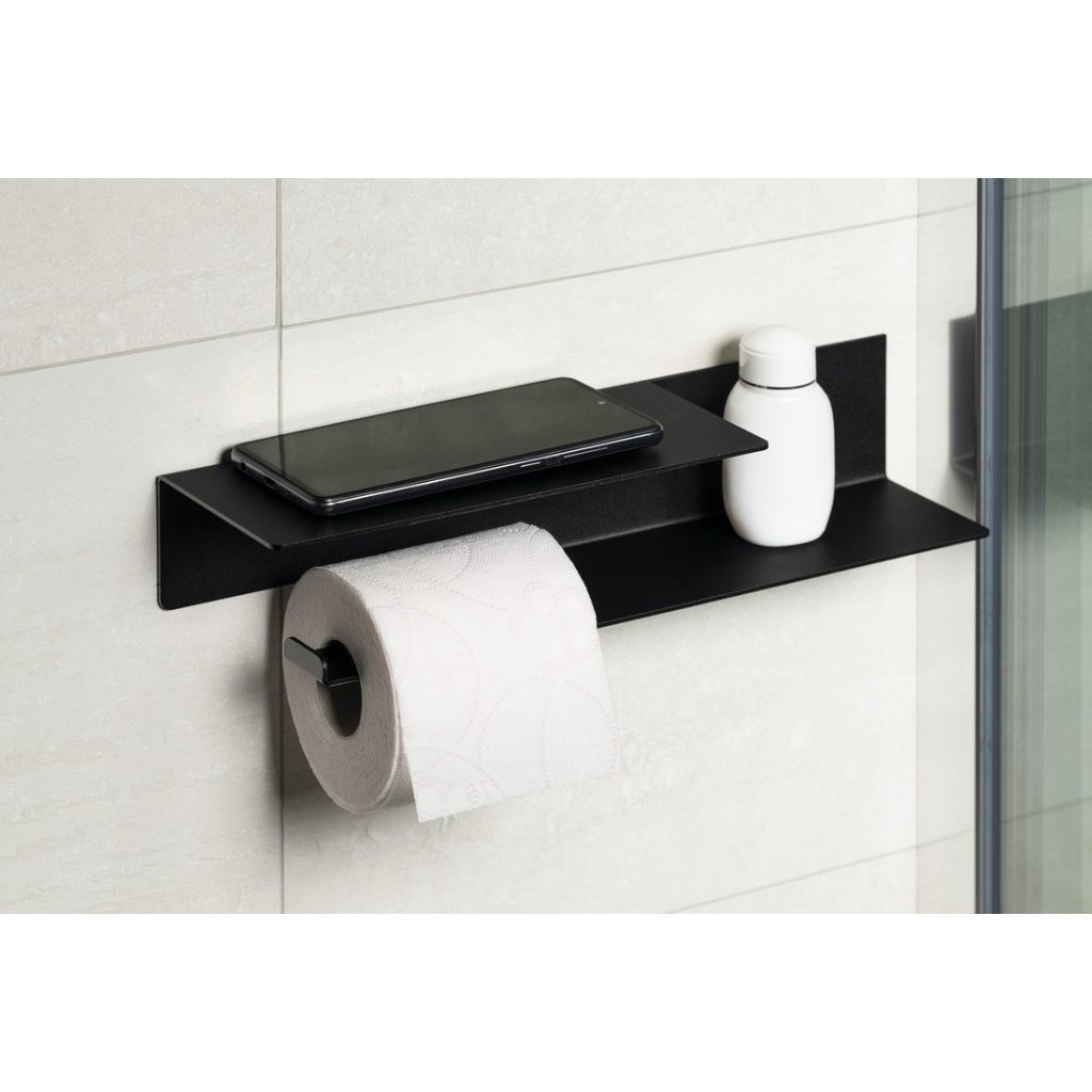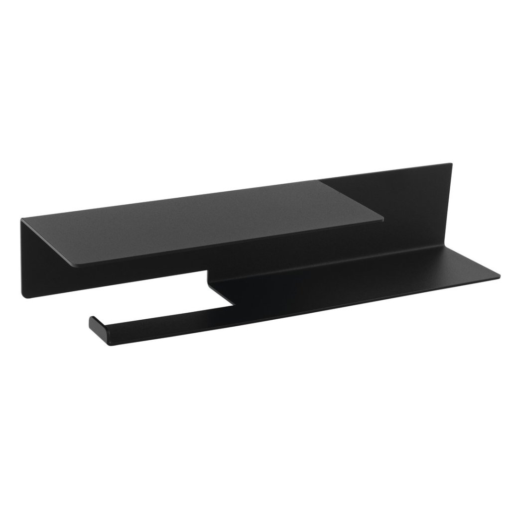 Sapho, Suport hârtie igienică cu raft 35x7x9,5cm, negru mat, 33214