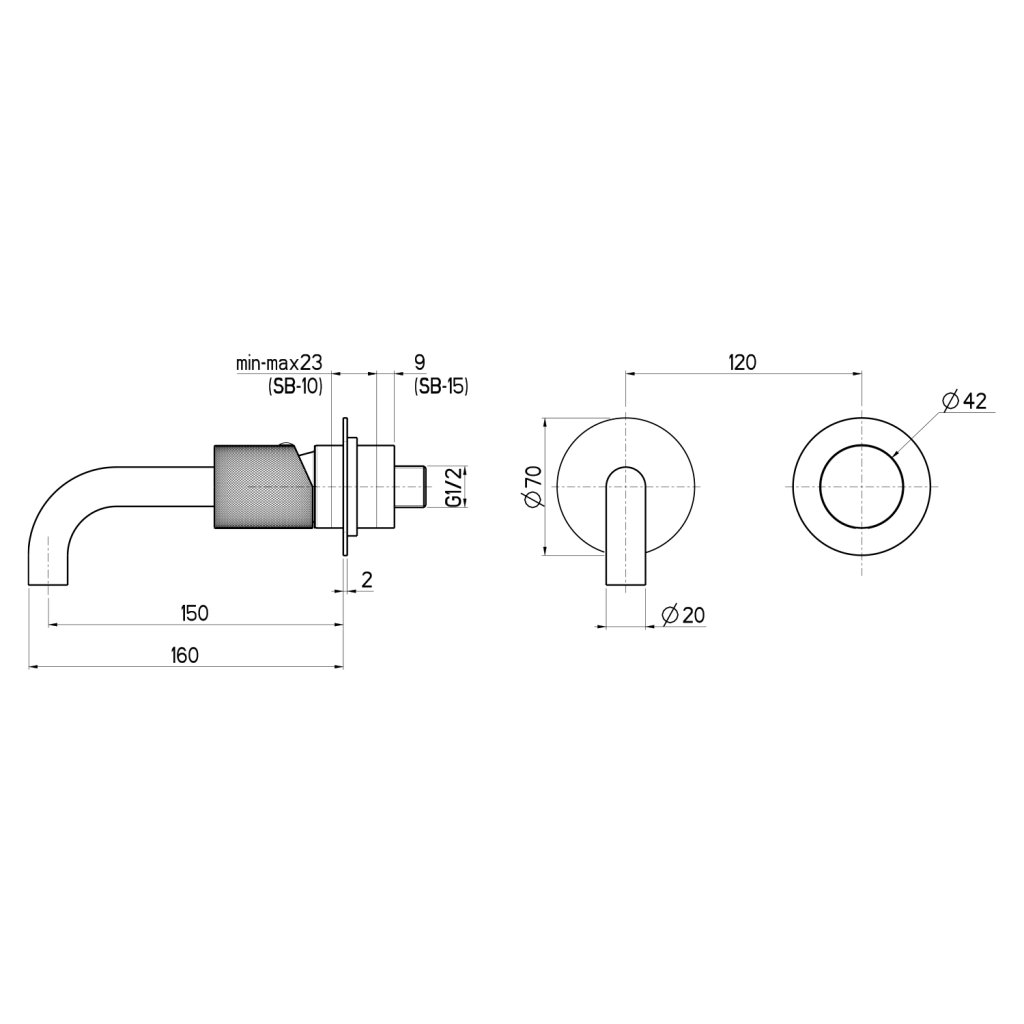 Sapho, ULTRATAP Baterie de lavoar ascuns cu 2 elemente, bec 16 cm, negru mat/crom, UT118TBC