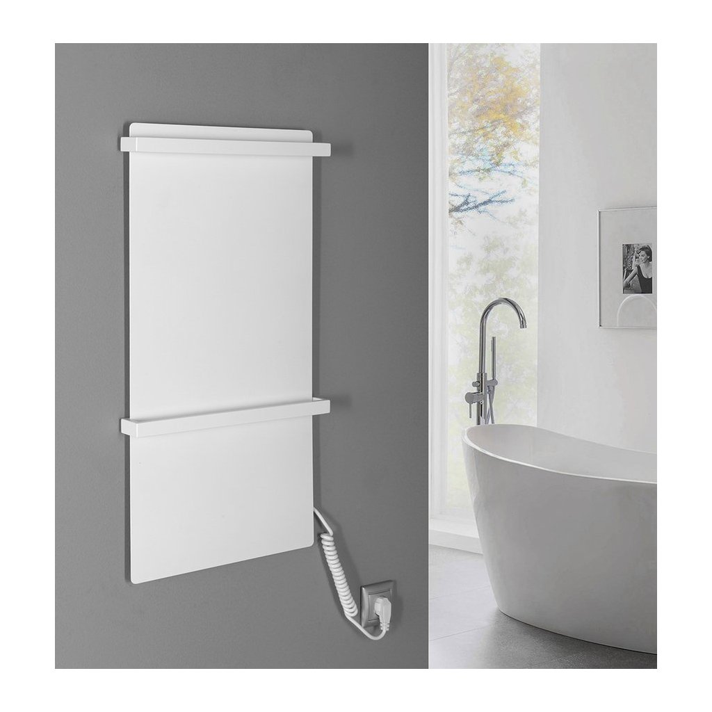 - Uscătorul include 2 mânere practice într-un design alb mat pentru agățarea prosoapelor.