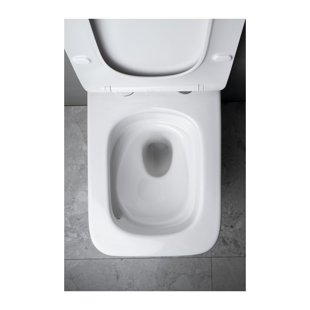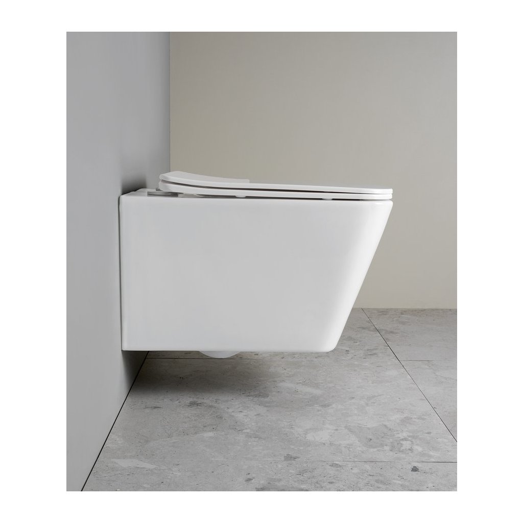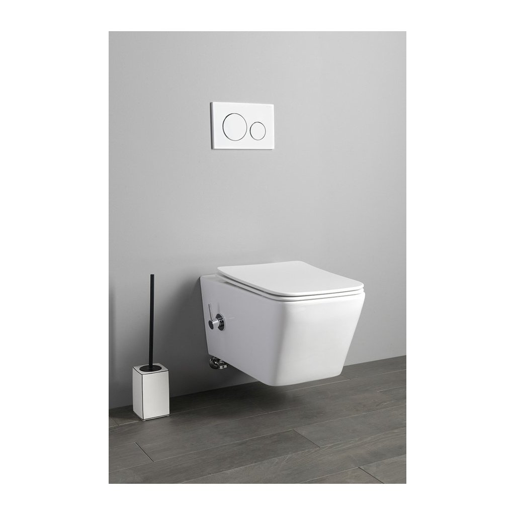 Vas de toaletă modern suspendat, cu tehnologie Vortex Rimless , care asigură o spălare completă și uniformă a întregului interior al vasului. Absența unui circuit de spălare crește semnificativ igiena și facilitează curățarea, deoarece nu există locuri ascunse în vas unde se pot acumula murdăria și bacteriile. Designul elegant pătrat, în alb, se potrivește atât în băile moderne, cât și în cele atemporale. Instalarea suspendată permite curățarea ușoară sub vasul de toaletă și creează un aspect curat și minimalist. Montajul ascuns subliniază estetica întregului set.