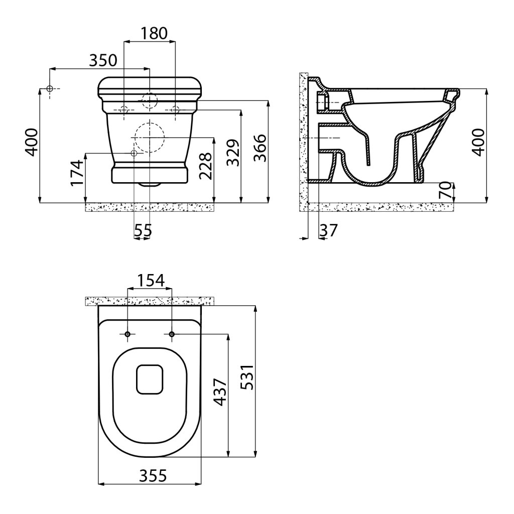 Sapho, vas WC suspendat ANTIC, 36x53 cm, alb, AN320