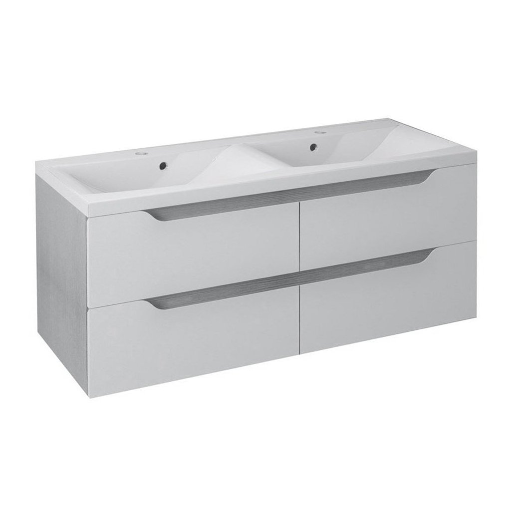 Sapho, WAVE dulap chiuveta dubla 119,7x50x47,8cm, stejar alb/argintiu (WA122), WA120-3011