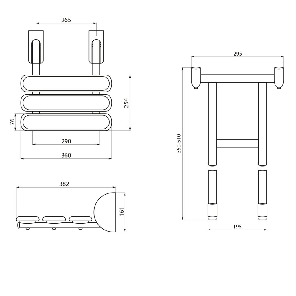 Scaun de duș pliabil Ridder, HANDICAP cu suport, 38x36cm, alb, A140101-1