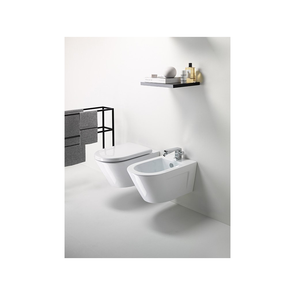 Cu ajutorul unui sistem hidraulic, atât capacul cât și scaunul cad încet pe vas. Plierea treptată a scaunului și a capacului garantează siguranță și previne deteriorarea scaunului și a vasului de toaletă/pisarului.