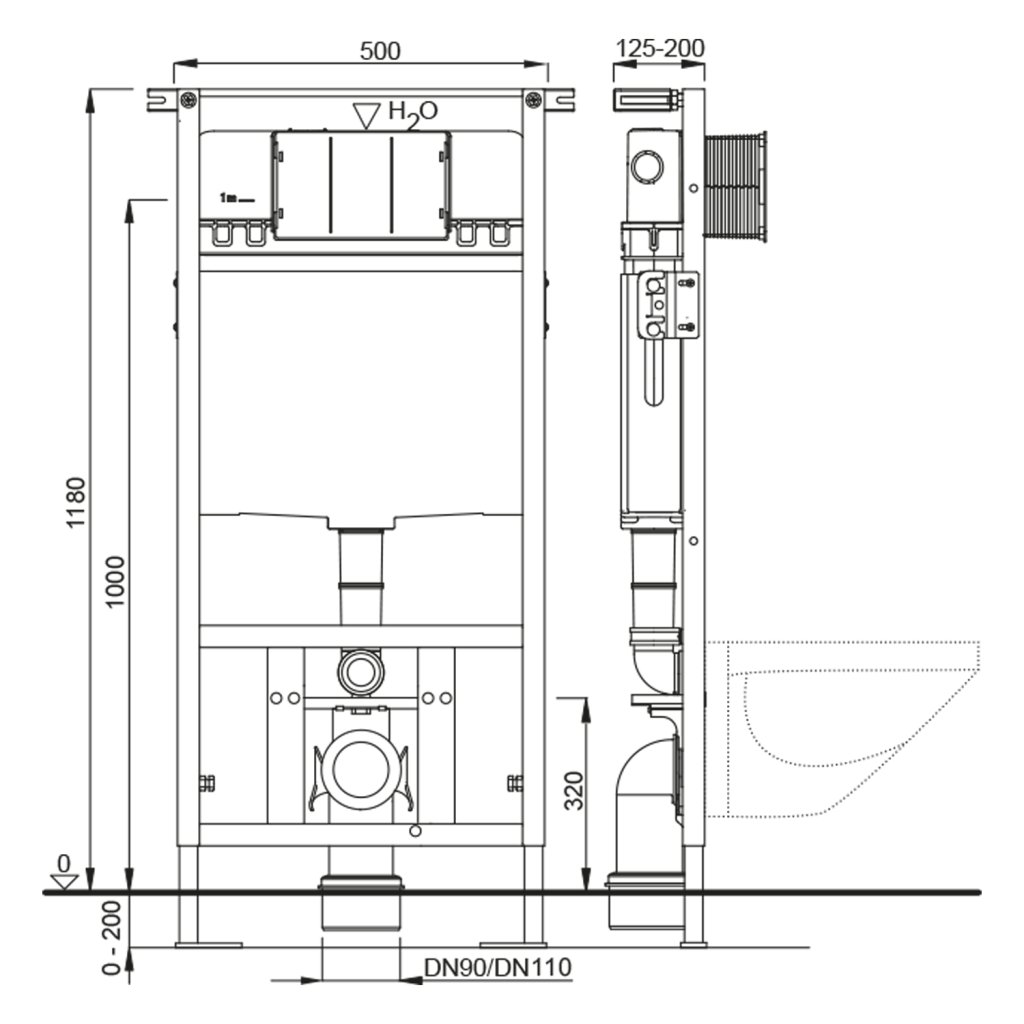 - Rezervor de spălare echipat cu o supapă de închidere și de golire preinstalată