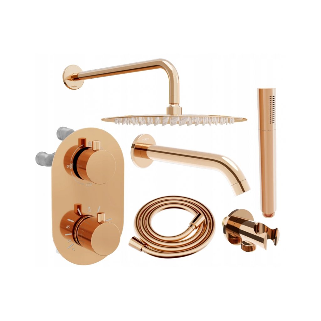 Set cadă și duș ascuns Mexen Kai DR70 cu duș cu efect de ploaie 30 cm, aur roz, 77602DR70301-60