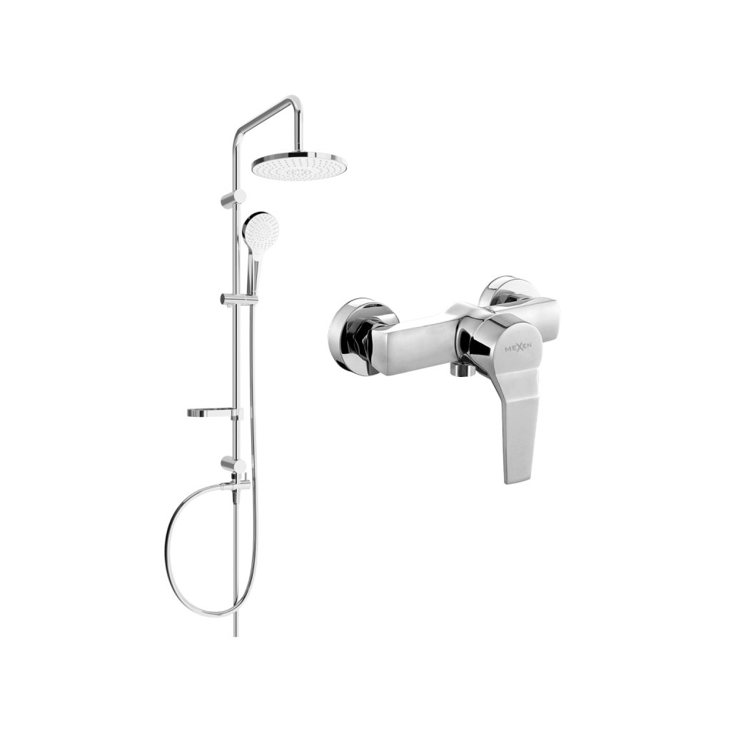 Set de duș Mexen Erik cu duș manual și cu efect de ploaie și robinet de duș Caro, crom, 746640205-00