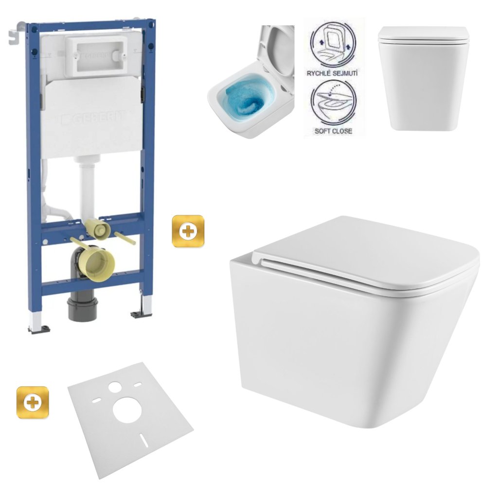 Set suspendat GEBERIT Duofix Basic+ WC TEO RIMLESS 51 x 35 cm + scaun cu cadere lenta Versiune subtire (subtire)