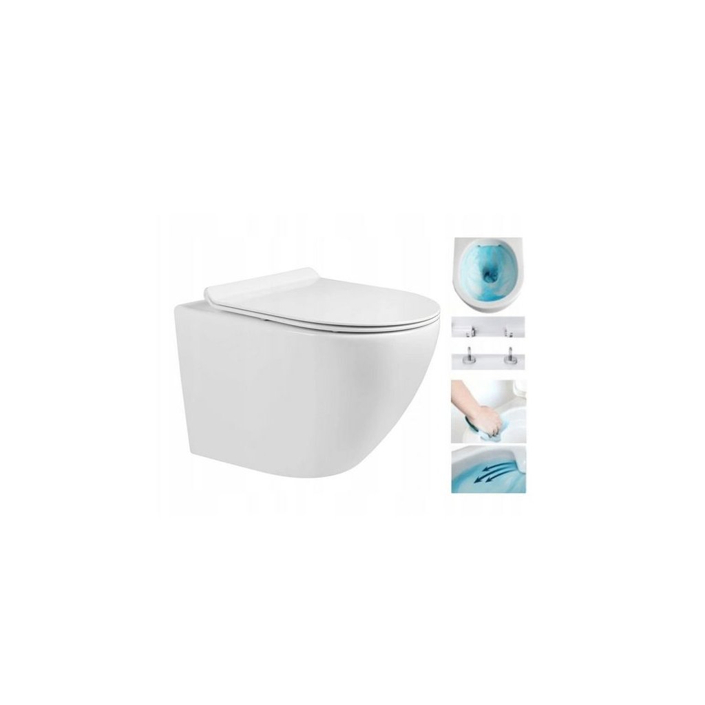 Set suspendat Mexen Fenix + toaletă LENA Rimless 48 x 36 cm + placă cu cădere lentă Slim, 60100 + 30224000