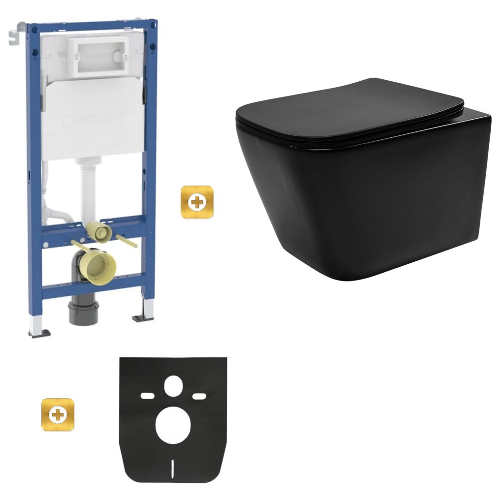 Set suspendat pentru vas WC GEBERIT Duofix Basic+ Erga Mery+ 51x36 cm + capac WC, negru, GEBERIT-MERY-TO2-BK-SET